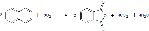 - Промышленно фталевый ангидирид получают окислением нафталина кислородом воздуха при нагревании до 435-450 С над катализатором (оксид ванадия(V)). Название реакции: реакция Гиббса-Воля. [Лит.1
