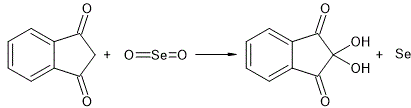 В 2-литровую круглодонную колбу, снабжённую обратным холодильником и механической мешалкой, помещают 55 г (мол.) возогнанной двуокиси селена, 1200 мл диоксана и 25 мл воды. Массу перемешивают и нагревают горелкой. По достижении температуры в приблизительно 65—70° горелку отставляют, в раствор вносят 73 г сырого 1,3-индандиона и смесь кипятят в течение 6 час.